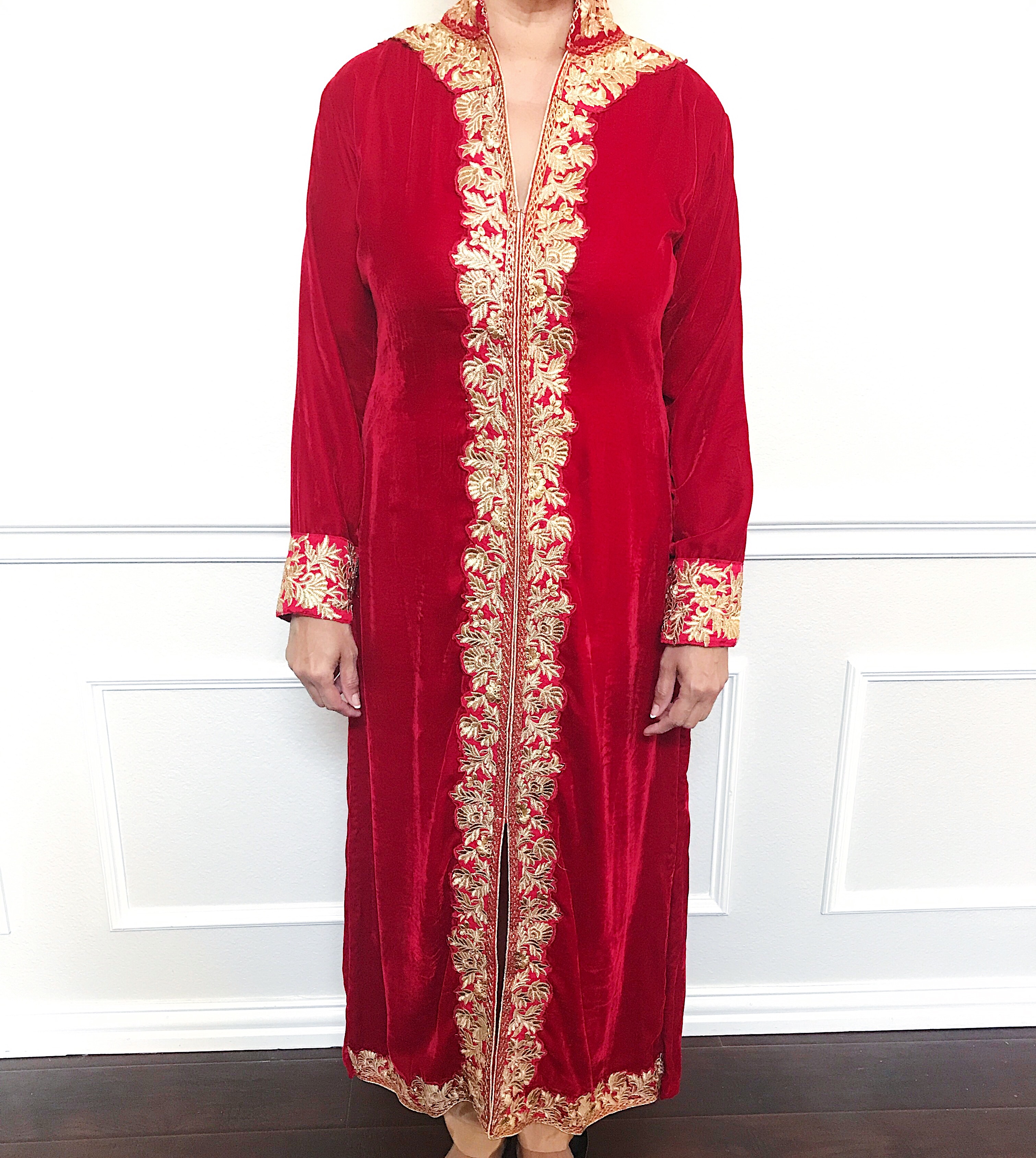 This red velvet suit comes with a beige shalwar pant. Gently used, excellent condition.